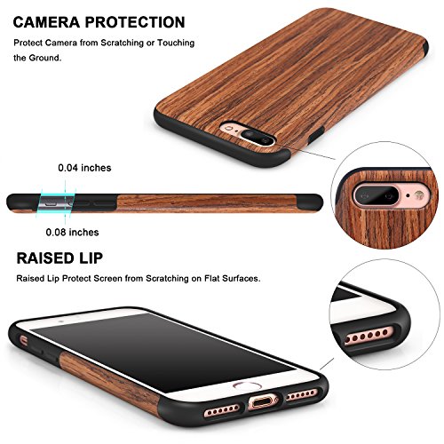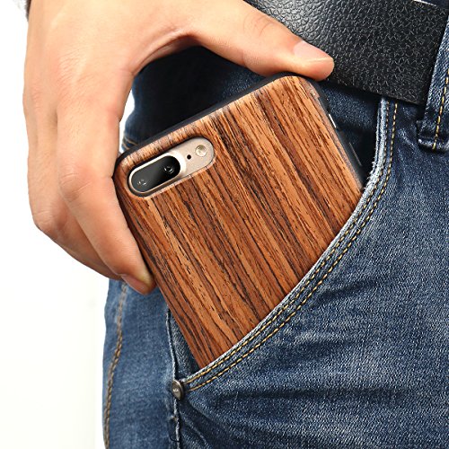 TENDLIN Cover iPhone 7 Plus Cover iPhone 8 Plus Legno Ibrida Silicone TPU Flessibile Custodia per iPhone 7 Plus e iPhone 8 Plus (Legno di Sandalo Rosso)
