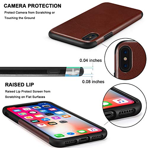 TENDLIN Cover iPhone X/Cover iPhone XS Classica in Pelle e TPU Silicone Hybrid Cover per iPhone XS/iPhone X - Marrone