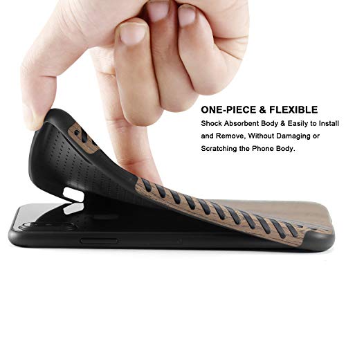 Custodia flessibile a singolo pezzo consta di strato di impiallacciatura di legno, pelle PU e strato di gomma TPU flessibile, 3 materiali sono sintetizzati;