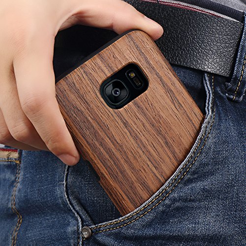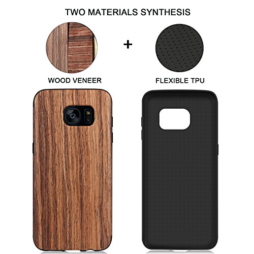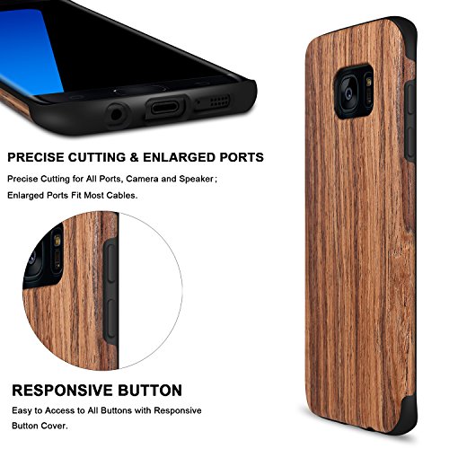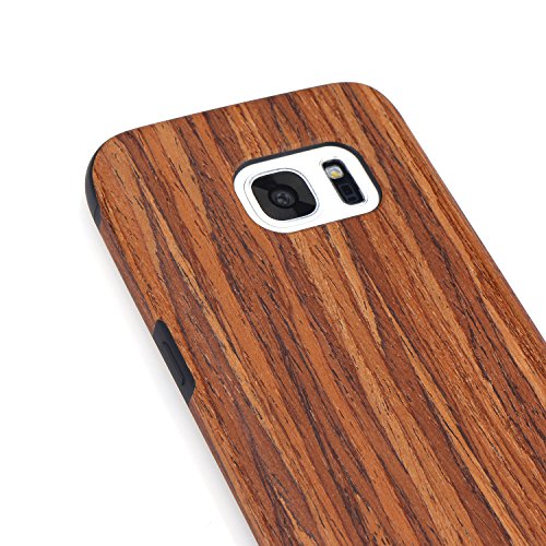 TENDLIN Cover Samsung Galaxy S7 Edge Legno Ibrida Silicone TPU Flessibile Custodia per Samsung Galaxy S7 Edge (Legno di Sandalo Rosso)