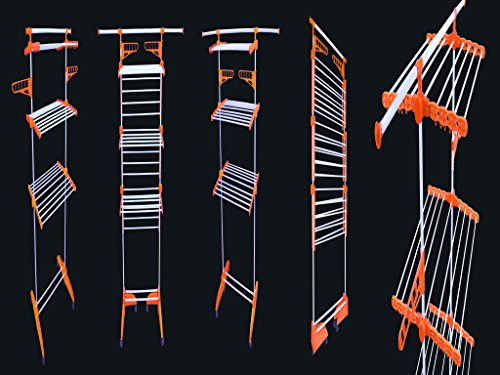 Lo stendibiancheria Tendo Spazio è dotato di ripiani per stendere sulla parte superiore che consentono di appendere i capi con grucce o la biancheria da letto, come le lenzuola, perché raggiungono una lunghezza di 1,60 m in orizzontale. La larghezza tra le aste è perfetta per ogni tipo di capi estivi e invernali.