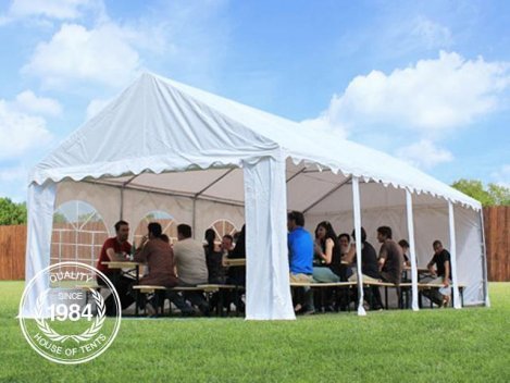TELONI DI ALTA QUALITÁ: I teloni sono realizzati in PVC da 500g/m² - una qualità Top. Tetto a campata unica - conferisce addizionale stabilità. Parti laterali con deflettori a terra per la climatizzazione automatica del tendone.