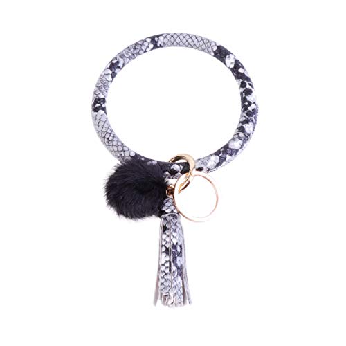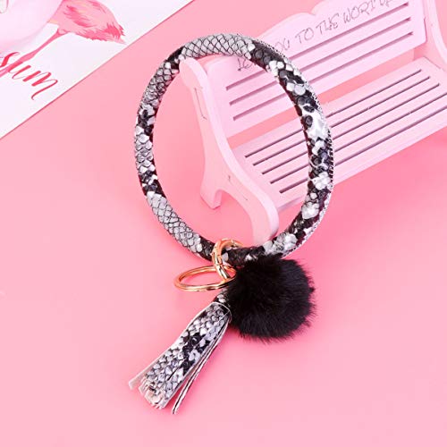 TENDYCOCO Bracciale Portachiavi Portachiavi Grande Cerchio Portachiavi Bangle Tondo Nappa Pom Pom in Pelle