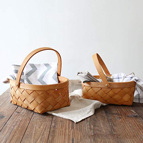 TENDYCOCO Cesto Intrecciato con Manico a Mano Rattan Contenitore di Stoccaggio Contenitore Domestico Organizzatore di Prodotti per Porzione di Verdure per Picnnics Party Home (Grande)