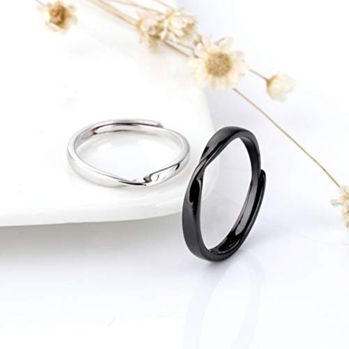 TENDYCOCO 2 pz S925 coppia di anelli in argento sterling regolabile anello aperto regali per le donne uomini amanti del fidanzamento (nero oro e platino)