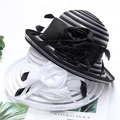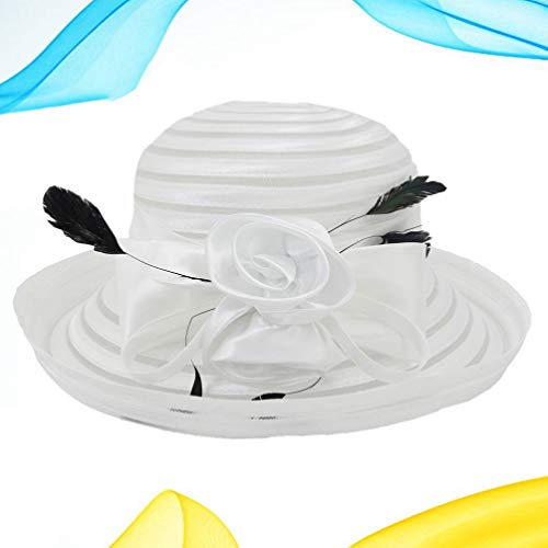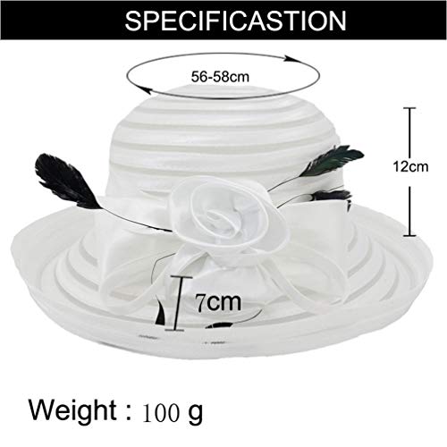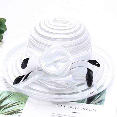 TENDYCOCO Le Donne Vestono Cappelli Cappello da Sposa Bianco Fiore Rotolo Bordo Cappellino da Sole Estivo a Larga Bombetta da Sposa per La Cerimonia di Banchetto Chiesa