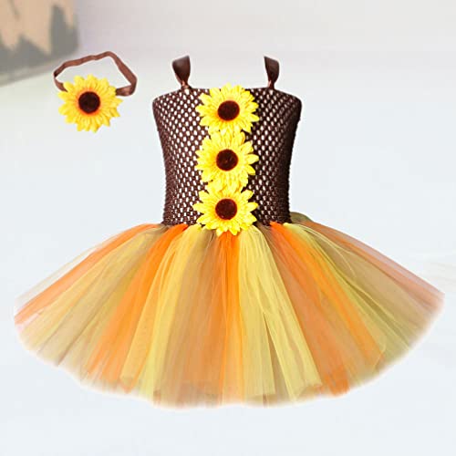 TENDYCOCO Gonna Tutu Girasole per Ragazze con Testa di Girasole Indossare Abito Estivo Principessa Ragazza Costume da Festa di Halloween per Cosplay per Ragazze Fantasia (per 10-12 Anni)