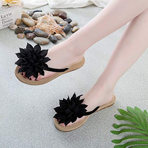 TENDYCOCO Infradito Flower Summer Beach Sandalo Casual Pantofole per Donna Taglia 38 (Nero)