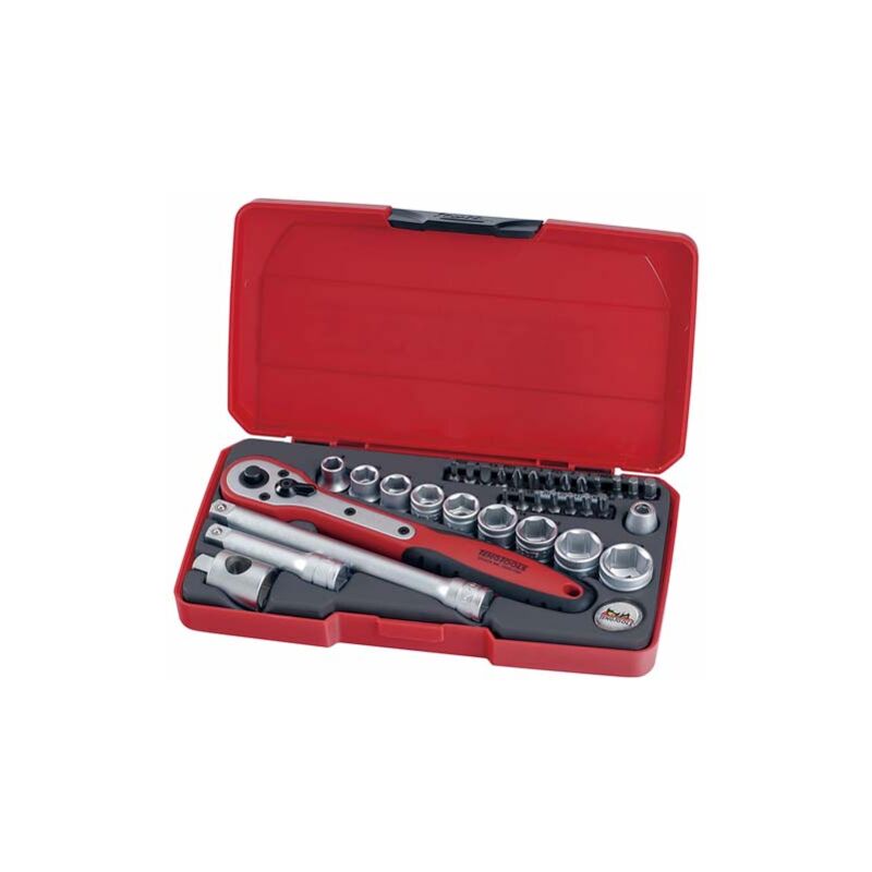 Il mazzo di chiavi Il Set di Bussole da 3/8” da 34 Pezzi di Tengtools è composto da una valigetta con 9 bussole esagonali regolari, una chiave a cricchetto rinforzata, un morsetto da 3" e 6", alcune prolunghe per barre, una chiave da 1 Adattatore /2"F - 3/8 M" e 20 inserti. /br>p> /br>p> Contiene: < /p>/br>p>Adattatore 1/2" F- 3/8" M/br>p>< span style="font-family:Arial,Helvetica,sans-serif">Punte esagonali interne 3-4-5-6 mm/br>p>Punte piatte 3-4-5,5 mm/br>p>Phillips PH1-2-3 bit/br>p> Punte Pozidriv PZ1-2-3/br>p>Suggerimenti TX TX10-15-20-25-27-30-40< /p>/br>p>Prese serie normale 8-10-11-12-13-14-15-17-19 mm-Il set di prese 3/8 ” da 34 pezzi della Tengtools è composto da una valigetta con 9 bussole esagonali regolari, una chiave a cricchetto rinforzata, un'asta di prolunga da 3"" e 6"", alcune barre di prolunga, un adattatore 1/2"" F - 3/8 M" " e 20 punte.include:1/2"" adattatore F- 3/8"" Mpunte esagonali interne 3-4 -5-6 mminserti piatti 3-4-5.5 mminserti Phillips PH1-2-3inserti