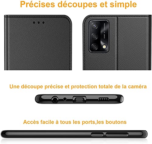Tenphone Cover per Oppo A74 4G, custodia protettiva Premium in pelle PU, chiusura magnetica, flip case compatibile con (Oppo A74 4G, libro nero)
