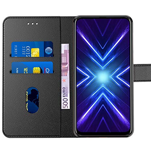 Tenphone Custodia per Huawei Honor 9X, protezione in pelle PU, portafoglio libro, [scomparti per schede],[funzione supporto],[linguetta magnetica] per (Honor 9X (6,59 pollici), colore: Nero