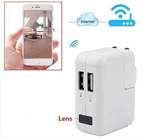 Telecamera P2P Wi-Fi con caricabatteria USB da parete:telecamera Wi-Fi con obiettivo ultra trasparente OV9712.