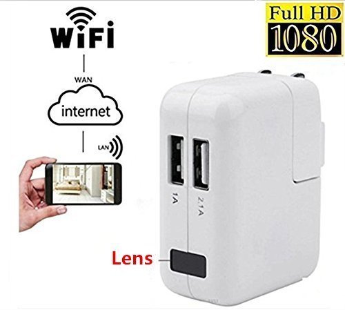 TenSky - Mini videocamera HD Wi-Fi da 1080 p, con caricabatteria, adattatore per fotocamera, spina AC da parete, caricabatterie P2P, telecamera con pin-hole, baby monitor con sensore di movimento, supporta IOS e Android