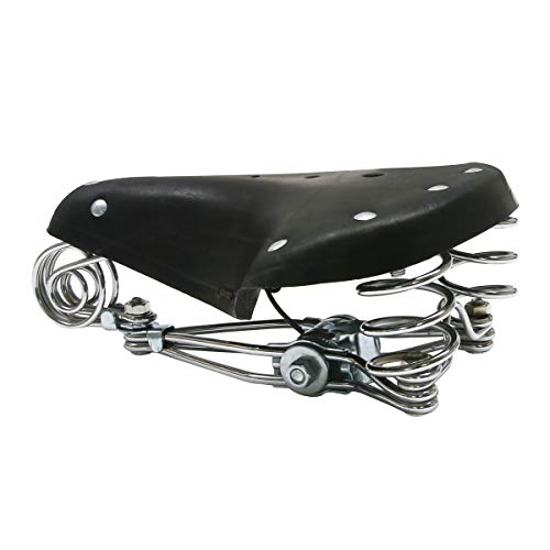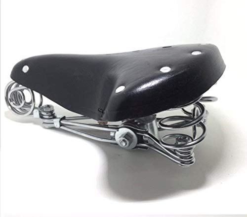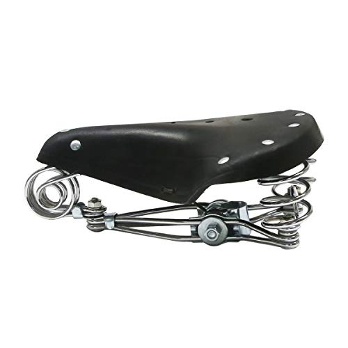 TentHome - Sella da bicicletta confortevole, vintage, in pelle, a molla elicoidale, per uomo e donna, Nero