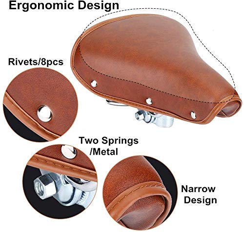 TentHome - Sella da bicicletta vintage in pelle PU a molla con rivetto, comoda per uomo e donna, marrone