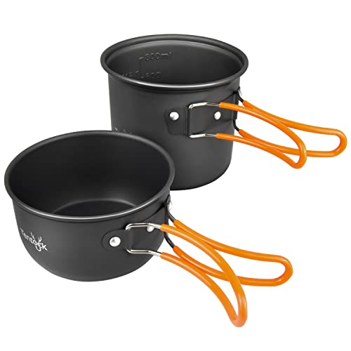 Tentock Set di Pentole da Campeggio Pieghevole Pentola e Padella Antiaderente in Alluminio Kit di Pentole All'aperto Portabile per Picnic Escursioni Pesca Barbecue (Set da 2 Pezzi)