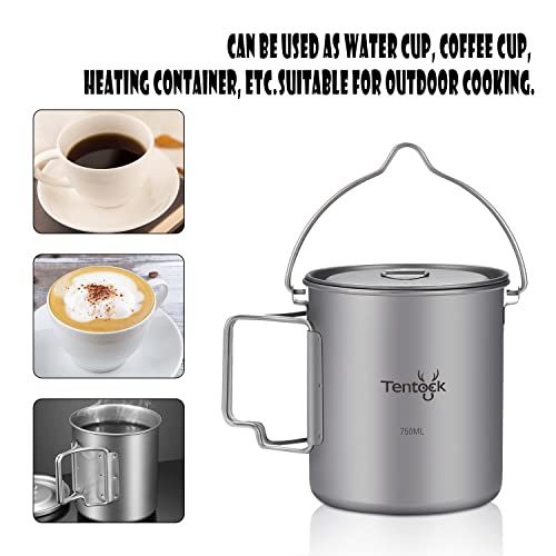 Tentock Tazza in Titanio da Campeggio con Coperchio e Maniglia Pieghevole, All'aperto Ultraleggero Acqua Tazza 420 ml / 750 ml (750ml)