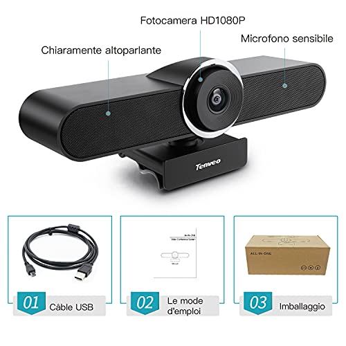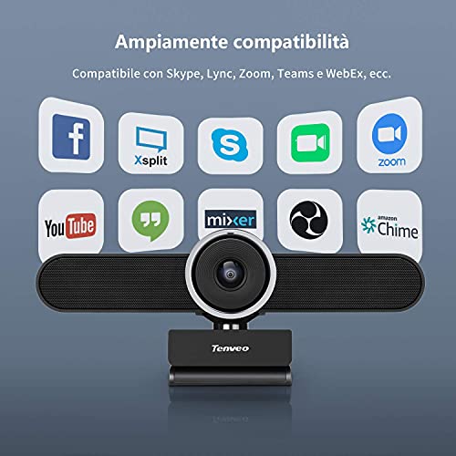 Tenveo HD 1080P webcam con altoparlante e microfono, per videoconferenze Skype/Zoom e YouTube/Twitch/OBS live streaming, (VA200Pro)