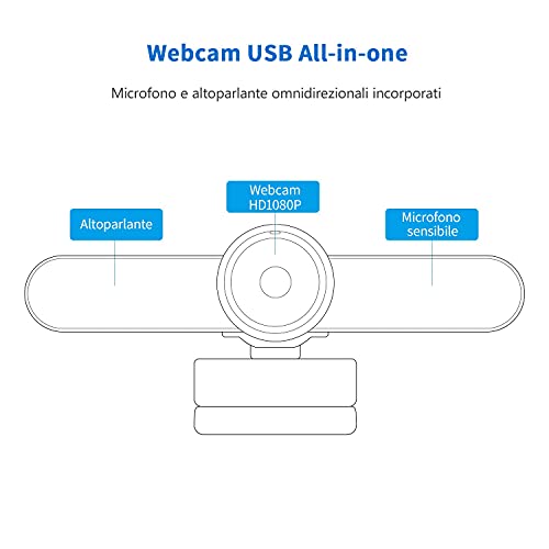 Webcam USB 3 in 1 con altoparlante e microfono per Skype / Zoom Conference, YouTube / Twitch / OBS Live Streaming. In grado di registrare, trasmettere in streaming e chiamare con una fotocamera Full HD 1080p. Video nitidi in alta definizione costante mentre 2 microfoni incorporati catturano la tua voce in un ricco audio stereo.