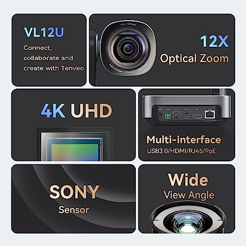 Tenveo 4K PTZ Streaming Camera con Zoom Ottico 12X USB3.0/HDMI/RJ45/PoE Telecamera per Sala Conferenze per Videoconferenze e Streaming in Chiesa Funziona con Zoom Skype Teams YouTube/OBS (VL12U)