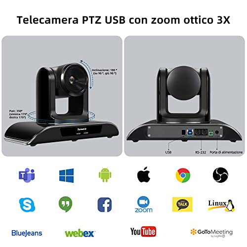 Tenveo Webcam HD 1080P per videoconferenza con zoom ottico 3X, USB PTZ, per videoconferenze/riunioni aziendali/streaming live YouTube/Twitch/OBS/Skype/Zoom(VHD3U)