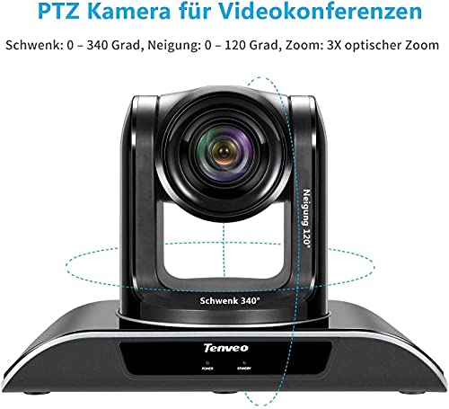 Tenveo Webcam VHD3U, zoom ottico 3X, telecamera per conferenze PTZ 1080P FULL HD per Skype/Zoom con microfono Bluetooth, supporto da parete/treppiede/montaggio a soffitto