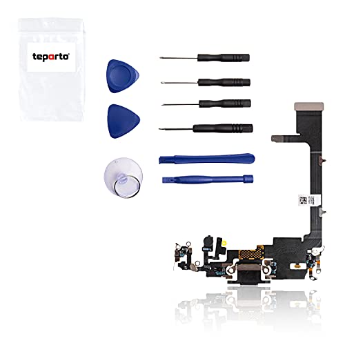Teparto Dock Connector compatibile con iPhone 11 Pro, presa di ricarica USB con set di attrezzi, nastro flessibile, cavo di ricarica flessibile, cavo di ricambio, nero/grigio