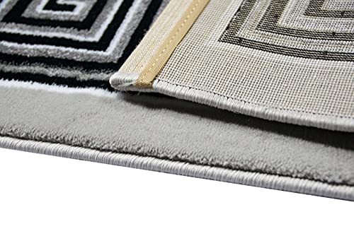 Teppich-Traum Tappeto Designer Tappeto Moderno Salotto Tappeto con Ornamenti Bordo Grigio Cream Nero Größe 80x150 cm