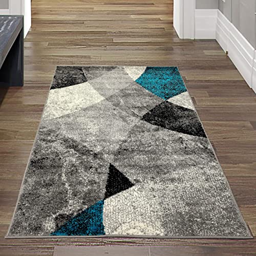 Teppich-Traum Tappeto Moderno Marmo con Design Astratto a Rombi Ondulato in Azzurro Grigio - Resistente Größe 60x110 cm