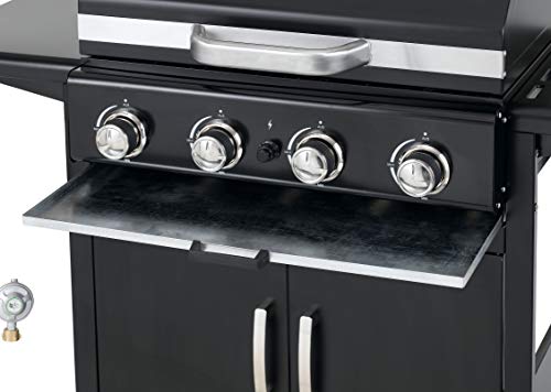Tepro - Barbecue a gas "Richfield', 4 bruciatori in acciaio inox, circa 3 kW, potenza totale max. 12 kW, superficie grill: circa 58 x 44 cm, superficie di mantenimento in caldo: circa 56 x 24 cm, 58 x 130 x 103 cm, 3153