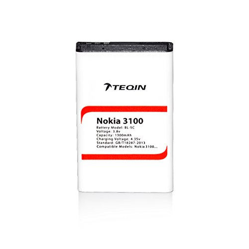TEQIN BL-5C 1300mAh Ricaricabile Voltaggio 3.8V Batteria + Borsa Velluto Fornire Energia per Nokia 3100/1100/2355/2600/2610/2626/6670/7610/1110i/1112i/6230i/E50/E60/N70/N91/BL-5C/ Cellulare