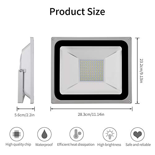 TEquem, faretto a LED da parete, bianco freddo, proiettore in alluminio, per esterno, 220 V, IP65 moderno 100W Kaltweiß