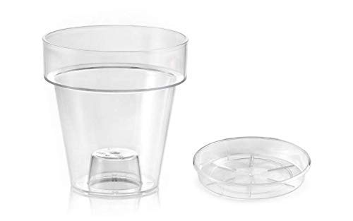 TERAPLAST Vaso Trasparente Porto Diametro CM 20 Completo di SOTTOVASO (3 Pezzi)