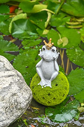 【Luce solare del re rana】 Questa divertente figura del re della rana si siede su sfere affollate con luce solare di muschio. Dimensioni: 15 x 15 x 30,5 cm