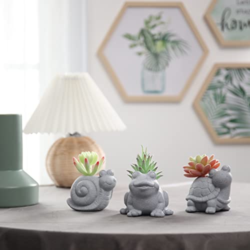 Design eccellente: 3 set, pianta artificiale animale di rana, tartaruga e lumaca, molto carina! La grande ciotola di cemento e la realistica succulenta artificiale sono di dimensioni adeguate per creare un'atmosfera rilassante