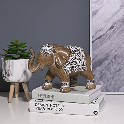 Opere d'arte squisite: la scultura dell'elefante combina le venature del legno con bellissimi motivi intagliati. L'arte pratica e raffinata e lo stile di design renderanno la tua decorazione più divertente.
