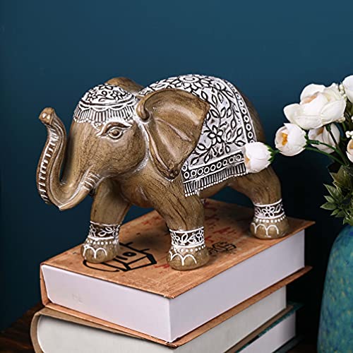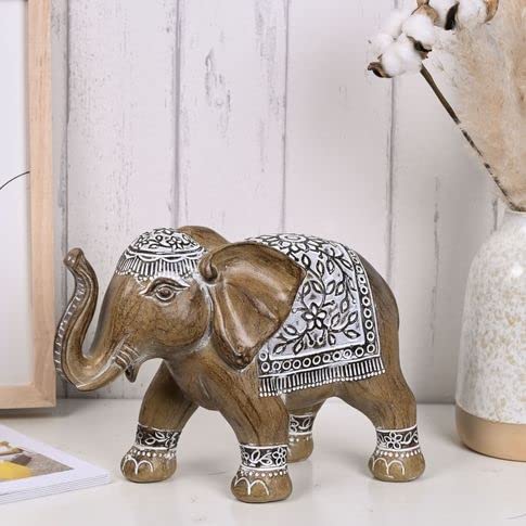 TERESA'S COLLECTIONS Statue Decorativa a Forma di Elefante in Resina Beige Pattern Decorativa per Interni 17cm