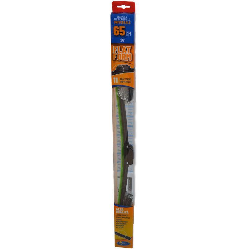 Spazzola tergicristallo - Marca Lubex - Modello Flat Form - Universale - 65 cm 26'' - Gomma naturale - 11 adattatori Spazzola tergicristallo universale Flat Form Lubex 65 cm, 26''. Gomma naturale di lunga durata che permette una tergitura accurata e scorrevole, design aerodinamico per migliorare l'aderenza al vetro. In ogni confezioni ci sono 11 adattatori universali.