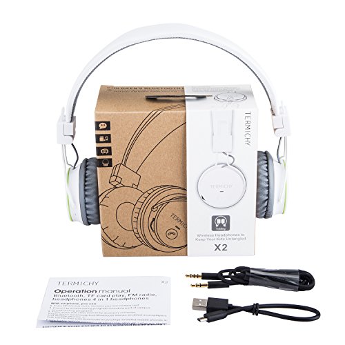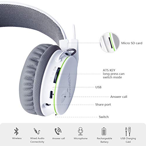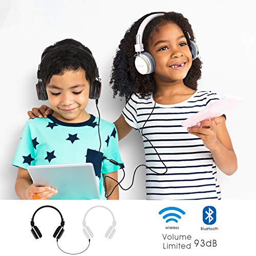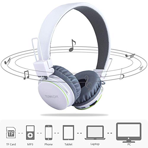 Termichy Cuffie Bluetooth Senza Fili per Bambini con Microfono + Controller Volume, Stereo Cuffie Auricolari Pieghevoli con condivisione Musica per Giochi Cellulari Smartphone Tablet PC (Bianco)