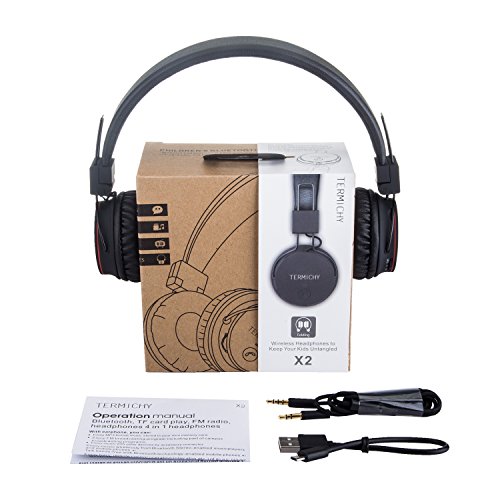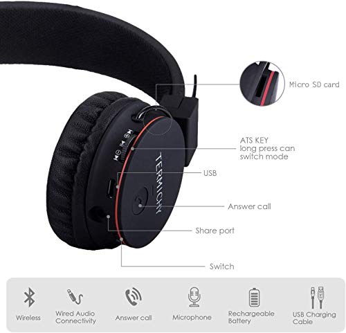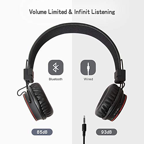 Termichy Cuffie Bluetooth Senza Fili per Bambini con Microfono + Controller Volume, Stereo Cuffie Auricolari Pieghevoli con condivisione Musica per Giochi Cellulari Smartphone Tablet PC (nero)