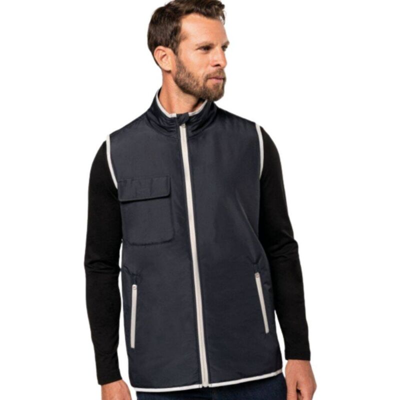 Caratteristiche: Resistenza termica (norma ISO 11092-2014) RCT: 0,138 m² k/w. Taglio dritto. Chiusura con zip in nylon. 2 tasche laterali con zip. 1 tasca sul petto con patta e portapenne, cucitura rinforzata, chiusura con velcro. Sbieco in tessuto argento su collo, giromanica e fondo del capo. 2 grandi tasche interne inferiori. Etichetta del nome all'interno del capo. Cravatta da appendere al colletto. Schiena estesa. Etichetta del marchio a strappo per una facile personalizzazione. Materiali: 100% poliestere. Esterno in taffetà 240T. Polifill 60g. Membrana PU argento all'interno. Prestazioni tecniche: impermeabile 5000 mm e antivento 5000.