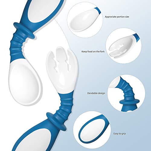 Termicy Posate per Bambini Forchetta Cucchiaio Bambino pieghevole autoalimentazione Apprendimento Posate con custodia da viaggio (blu)