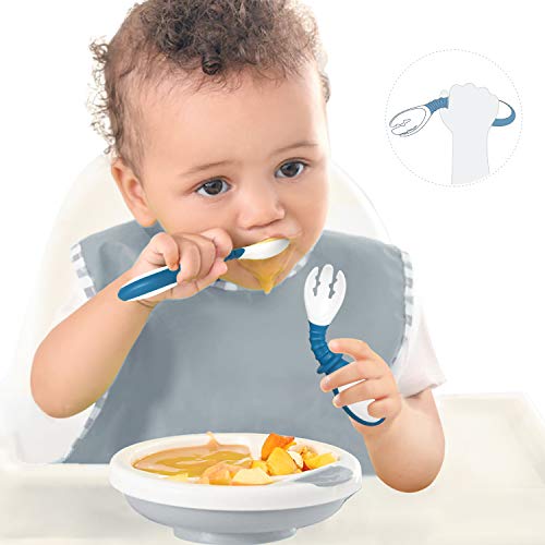 Bordo più sicuro: il bordo della forcella arrotondato non danneggia la bocca del bambino anche in caso di uso indipendente. I denti della forcella a spirale assorbono facilmente gli alimenti ed evitano lo scivolamento.