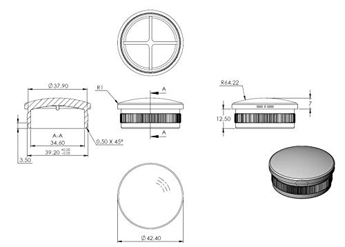 TERMINALE leggermente bombato, vuoto, per tubo Ø 42,4 X 2,0 mm, a caldo