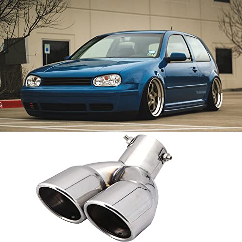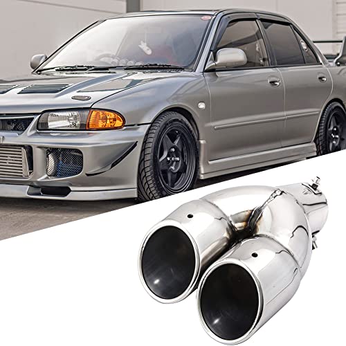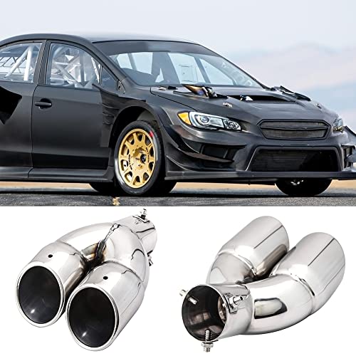 Terminale di scarico doppio da 76 mm, in acciaio inox, per auto, doppio tubo di scappamento a Y, a forma di Y, obliquo, silenziatore universale, curvo