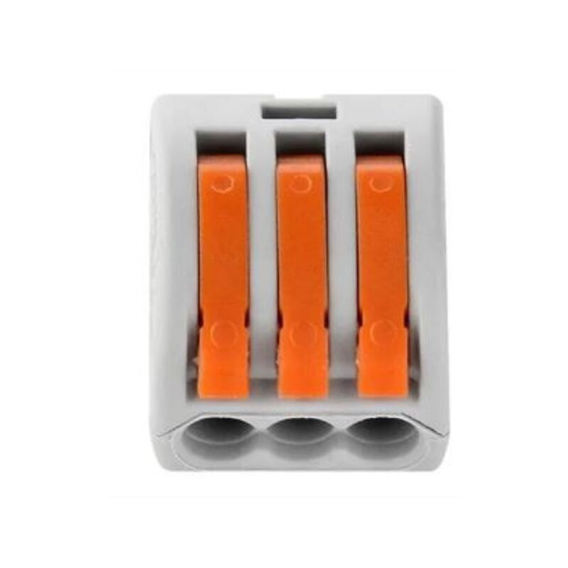Senza utilizzare un cacciavite) ... grazie al sistema di serraggio della molla, basta sollevare la leva, inserire il filo adeguato e abbassare la leva per ottenere una connessione sicura. Questo terminale di connessione a 3 fili con leva ha un marcatore di lunghezza per lo stripping del filo, che si trova sulla parte inferiore del terminale. Il diametro dei fili elettrici può variare da 0,08 mm a 4 mm. prodotto in conformità con standard questo e direttiva ROHS . venduto da un set di 5 unità