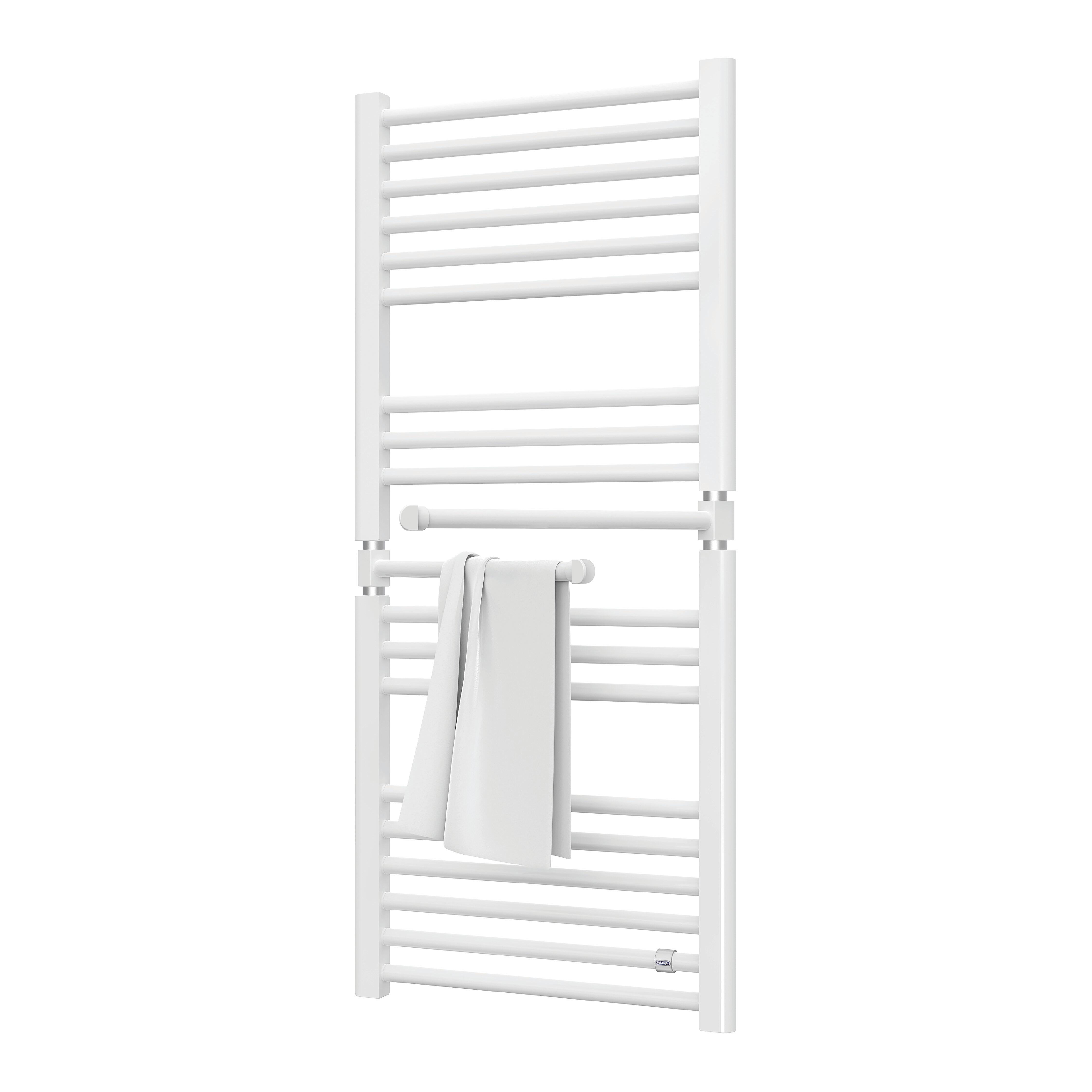 Termoarredo elettrico con due tubi basculanti che abbina estetiche classiche ad un concetto innovativo. I tubi basculanti caldi consentono una perfetta asciugatura degli indumenti ottimizzando gli spazi e senza inibire la resa termica del termoarredo. Abbinabile alle valvole De'Longhi per l'estensione della garanzia a vita