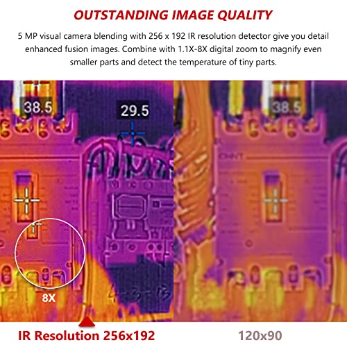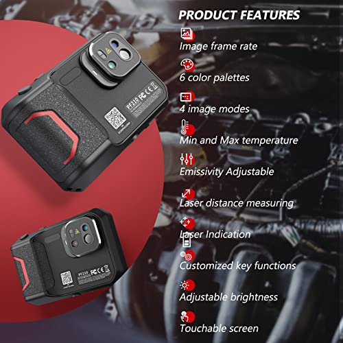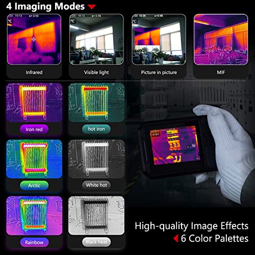 【IMMAGINI TERMICHE PIÙ CHIARE】Questa termocamera a infrarossi ha una risoluzione di 256*192, 5 milioni di pixel ed è dotata di un algoritmo di riduzione del rumore di nuova generazione per ottimizzare la qualità dell'immagine e rendere l'immagine più chiara. La sua gamma di misura: -20℃~150℃, 100℃~550℃, campo di vista 56°*48°.