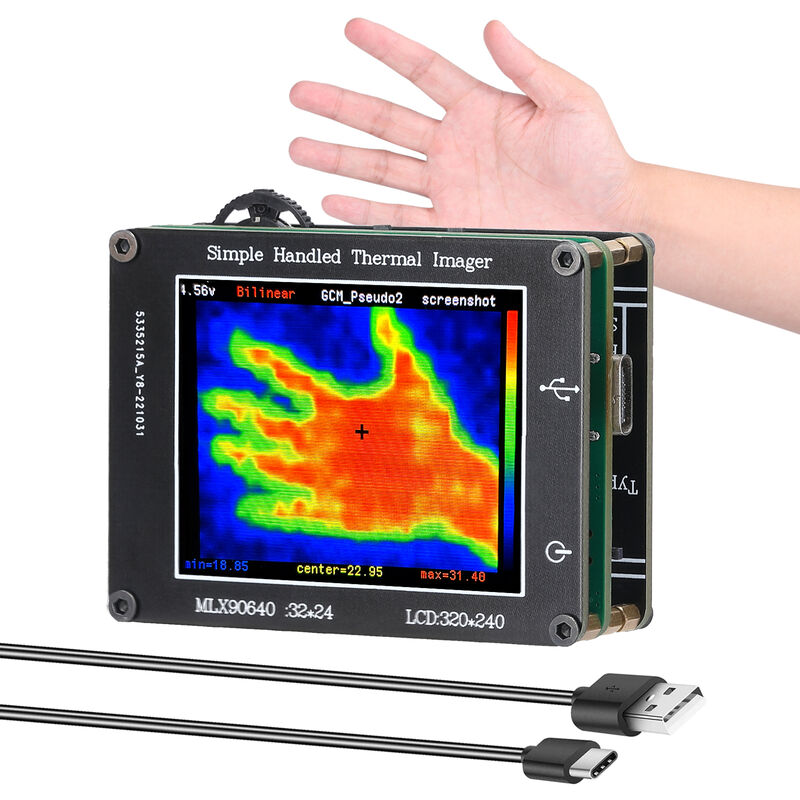 Questa termocamera portatile e multifunzionale presenta dimensioni compatte ed è leggera. Adotta un sensore a infrarossi, un array a infrarossi lontani da 32 * 24 pixel, immagini nitide. L'ampio schermo a colori LCD da 3,2 pollici, con risoluzione 240*320, visualizza e traccia chiaramente la temperatura massima, la temperatura minima e la temperatura del punto centrale. Può essere utilizzato in varie situazioni ed è uno strumento indispensabile per uso domestico e industriale. Caratteristiche: Questo prodotto combina le funzioni di misurazione della temperatura superficiale e imaging termico in tempo reale, adatto per la misurazione della temperatura senza contatto, la funzione di rilevamento della temperatura umana, il rilevamento della temperatura ambiente, la funzione di rilevamento della temperatura delle parti industriali. Con un design integrato, compatto, leggero e portatile, è facile da trasportare e non occupa troppo spazio, può funzionare senza problemi senza dispositivi