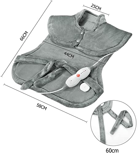 Termoforo Elettrico Cervicale e Spalle Scaldacollo con 4 Livelli di Temperatura 60 x 85cm, Riscaldamento Rapido e Protezione da Surriscaldamento, Lavabile